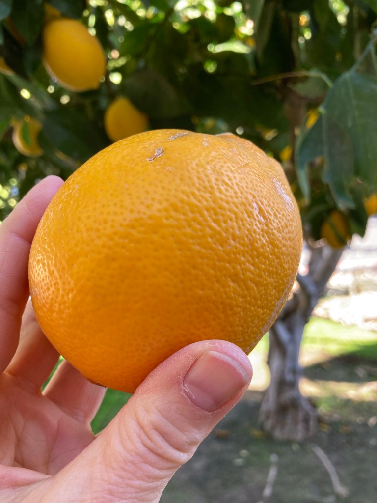 I did not have my camera with me, or I would have snapped a photo for you. Instead, I allowed myself to be present in the fleeting moment of moonset, bathed in silver light. Then I came home and found, lying on the plush grass under our lemon tree in the darkness, what appeared to be an orange. But it was not an orange. It was a giant lemon! A lemon so ripe, fat and juicy it had grown nearly as round as the full moon.