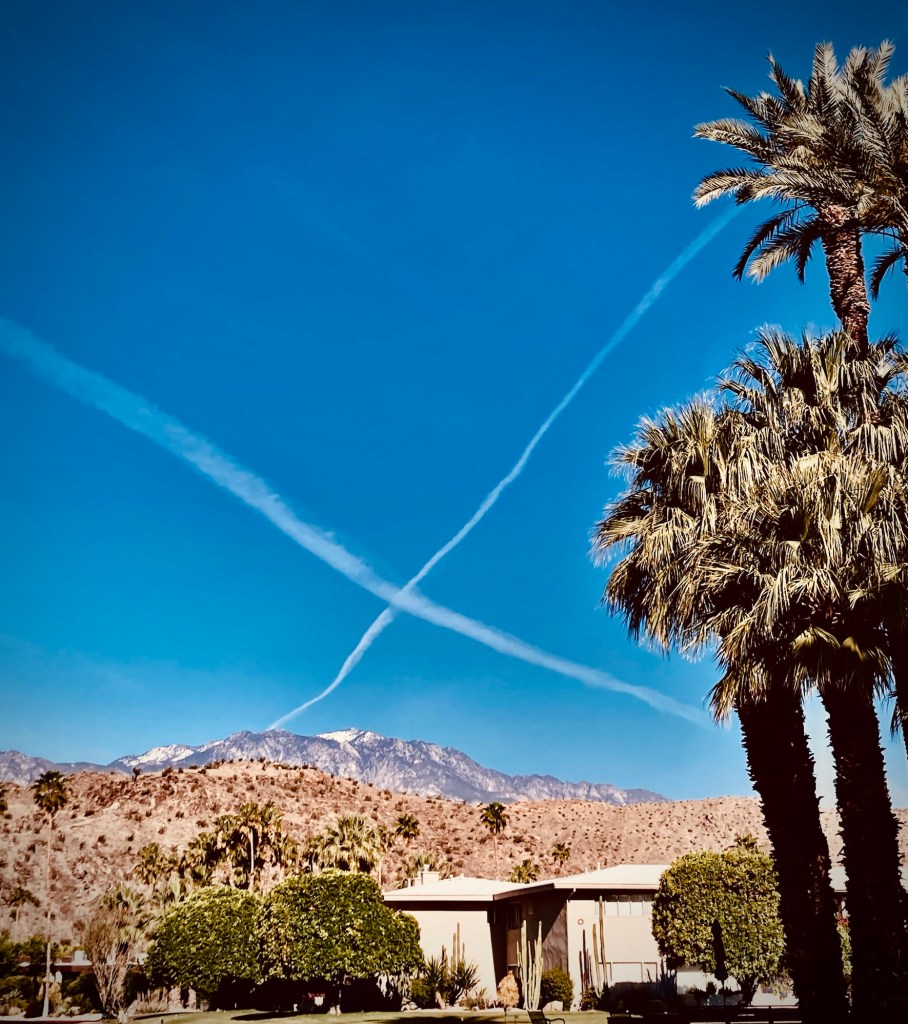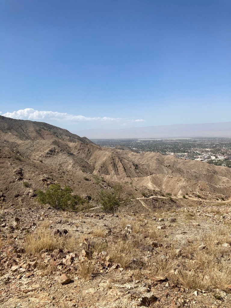 Yesterday, after the full moon in Scorpio kept me up at least half the night, Timi and I went on a hike with Luisa, our magical new friend. Luisa had arrived at the trail before us, and was waiting up at the first landing on the way to the summit. Our destination: the 30-foot tall illuminated cross—adorned with painted stones, talismans, and offerings at its base—which gives the Palm Desert Cross Hike its name.